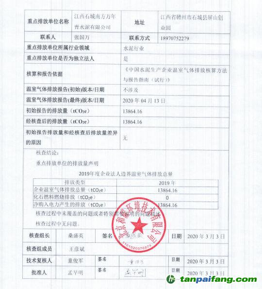 附件:江西石城南方萬年青水泥有限公司2019年度溫室氣體排放核查報(bào)告