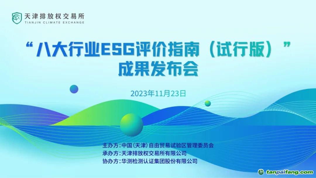 2023年11月23日,由中國(guó)(天津)自由貿(mào)易試驗(yàn)區(qū)管委會(huì)主辦,天津排放權(quán)交易所承辦、華測(cè)檢測(cè)認(rèn)證集團(tuán)股份有限公司協(xié)辦的“八大行業(yè)ESG評(píng)價(jià)指南(試行版)”發(fā)布會(huì)成功召開,會(huì)上正式發(fā)布了八大行業(yè)ESG評(píng)價(jià)指南(試行版)并進(jìn)行了成果解讀。 內(nèi)/容/來/自:中-國(guó)-碳-排-放*交…易-網(wǎng)-tan pai fang . com