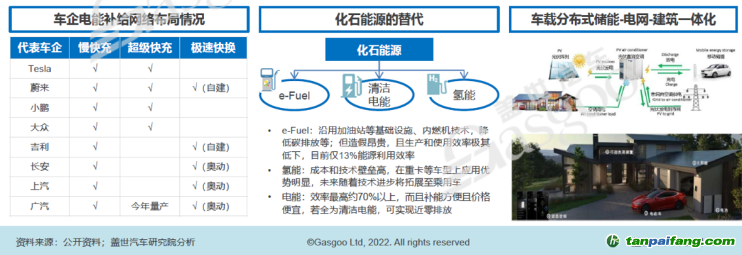 構(gòu)建以清潔電能為主體的能源補(bǔ)給網(wǎng)絡(luò),圖片來源:蓋世汽車研究院各大車企在實現(xiàn)碳中和的行動中都會提到大幅提升電動化產(chǎn)品的銷量占比。雖然新能源車型的普及是汽車產(chǎn)業(yè)減碳的重要措施之一,但由于目前我國使用的電能中很大比例來源于火電,這就造成了新能源汽車的碳排放重點轉(zhuǎn)移到了電池生產(chǎn)和電能供給方面,因此,要實現(xiàn)汽車產(chǎn)業(yè)全生命周期內(nèi)的碳中和,必須構(gòu)建以清潔電能為主體的能源補(bǔ)給網(wǎng)絡(luò),實現(xiàn)源頭零碳。