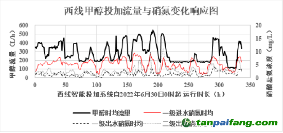 系統(tǒng)采用前饋+后饋+數據預測與決策的綜合解決方案,通過建立工藝數學模型來實現碳源投加的智慧控制,在設定的出水TN控制紅線內,讓碳源投加量與進水TN負荷及其他關鍵工藝控制參數“心心相映、協(xié)調共舞”,做到實時響應,準確匹配。 本/文-內/容/來/自:中-國-碳-排-放-網-tan pai fang . com
