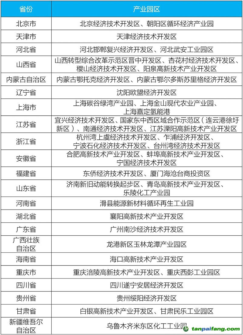 產(chǎn)業(yè)園區(qū)試點(diǎn)名單