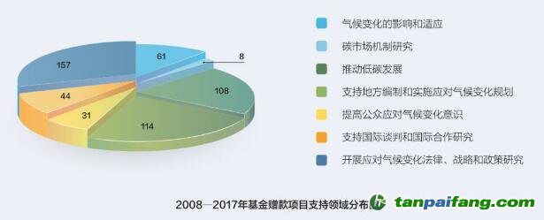 圖1:2008-2017年清潔基金贈款項(xiàng)目支持領(lǐng)域分布圖 本+文`內(nèi).容.來.自:中`國`碳`排*放*交*易^網(wǎng) t a np ai fan g.com