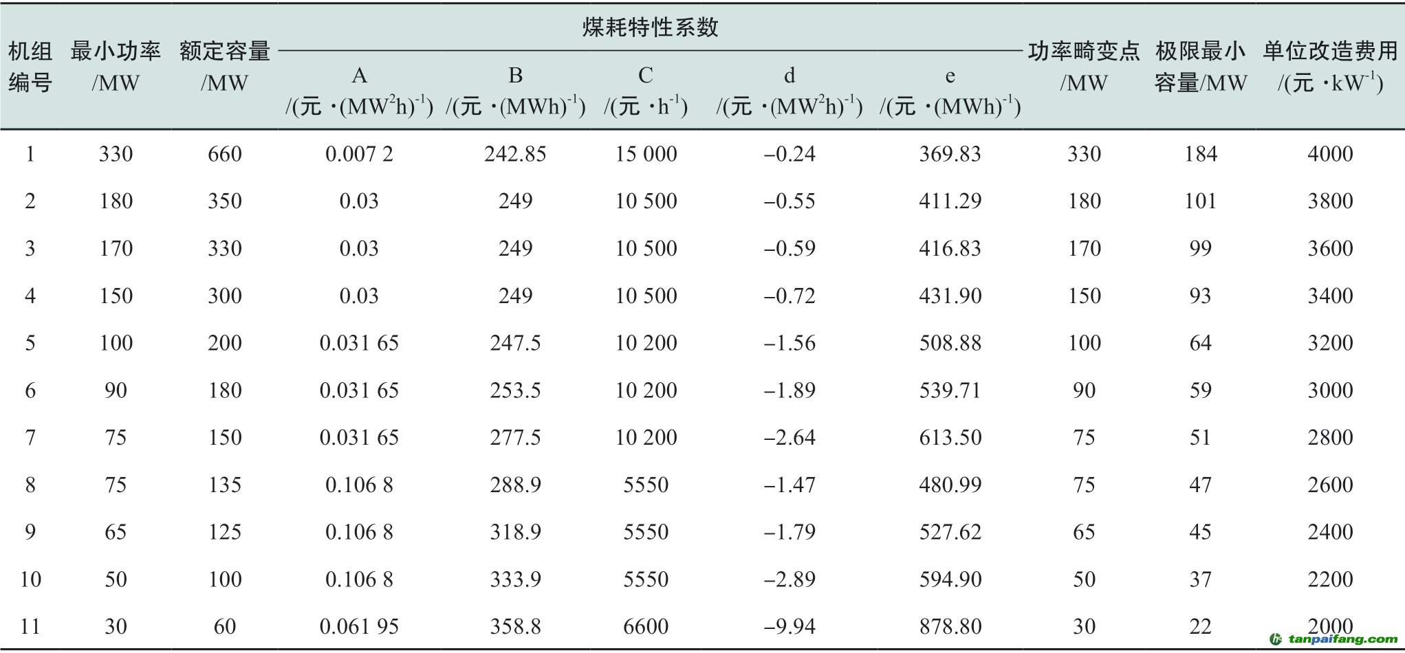 2)靈活性改造前后,火電機(jī)組的等效煤耗率排列順序不變,各機(jī)組參與安排的次序不變。 本+文+內(nèi).容.來.自:中`國`碳`排*放*交*易^網(wǎng) t a np ai fan g.com