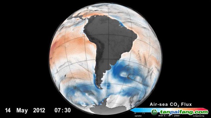 本頁(yè)的動(dòng)畫和靜態(tài)圖像顯示了2012年全球海洋吸收二氧化碳(藍(lán)色)和排放二氧化碳(紅色)的區(qū)域。(跳到視頻1:00處可關(guān)注南半球)數(shù)據(jù)來自ECCO-達(dá)爾文全球海洋生物地球化學(xué)模型。這項(xiàng)研究得到了美國(guó)國(guó)家科學(xué)基金會(huì)、美國(guó)國(guó)家航空航天局和美國(guó)國(guó)家海洋和大氣管理局的資助。