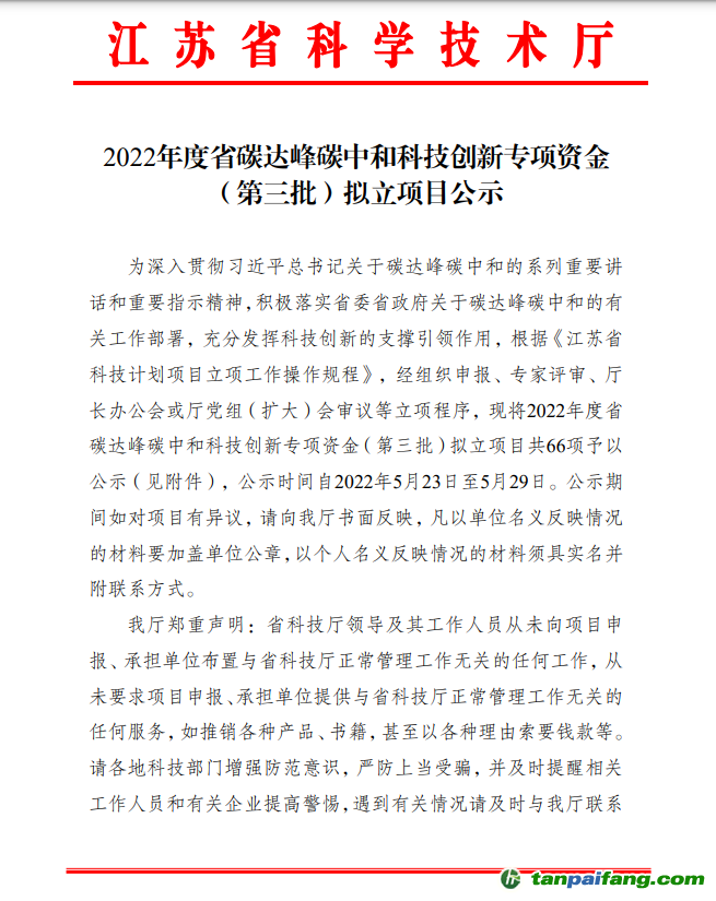 2022年度省碳達(dá)峰碳中和科技創(chuàng)新專項(xiàng)資金(第三批)擬立項(xiàng)目公示 本文@內(nèi)/容/來/自:中-國-碳^排-放-交易&*網(wǎng)-tan pai fang . com