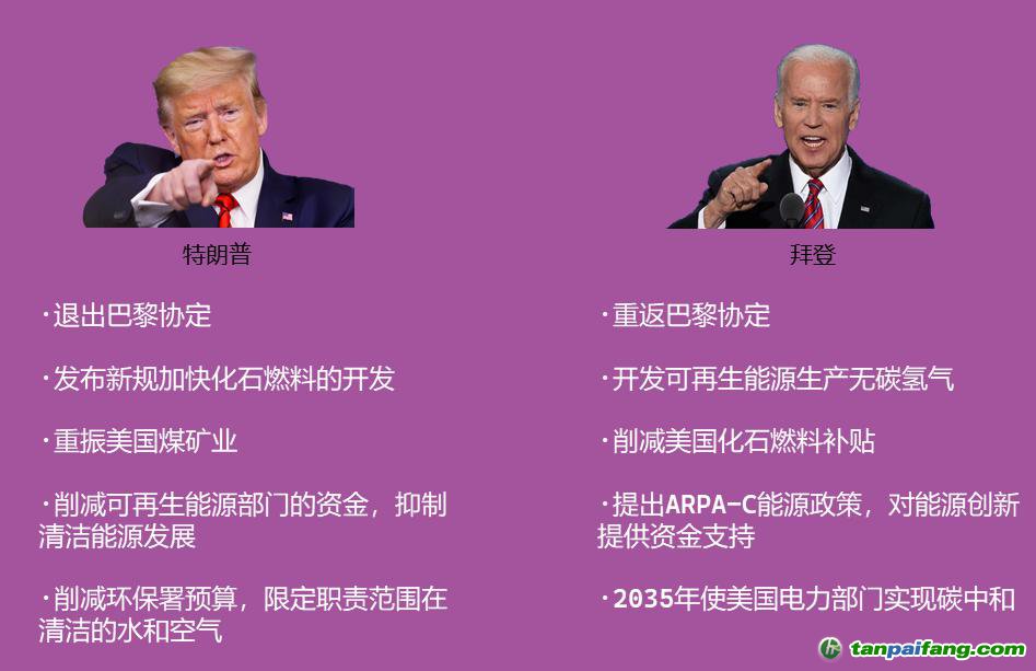 美國是 " 反復(fù)橫跳派 " 代表。一朝天子一朝臣的特色下,在國際上:反復(fù) " 退群 " 氣候協(xié)定。在其國內(nèi):利好新能源的政策和利好化石能源的政策頻繁 " 兩極反轉(zhuǎn) ",地區(qū)和企業(yè)之間互相拉幫結(jié)派,整個(gè)能源產(chǎn)業(yè)難以協(xié)同作戰(zhàn)。 禸*嫆唻@洎:狆國湠棑倣茭昜蛧 τāńpāīfāńɡ.cōm