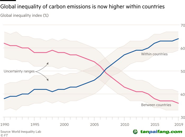 “目前,國(guó)家內(nèi)部的碳不平等占全球排放不平等的大部分,約占總量的三分之二,與1990年相比幾乎完全逆轉(zhuǎn)。”