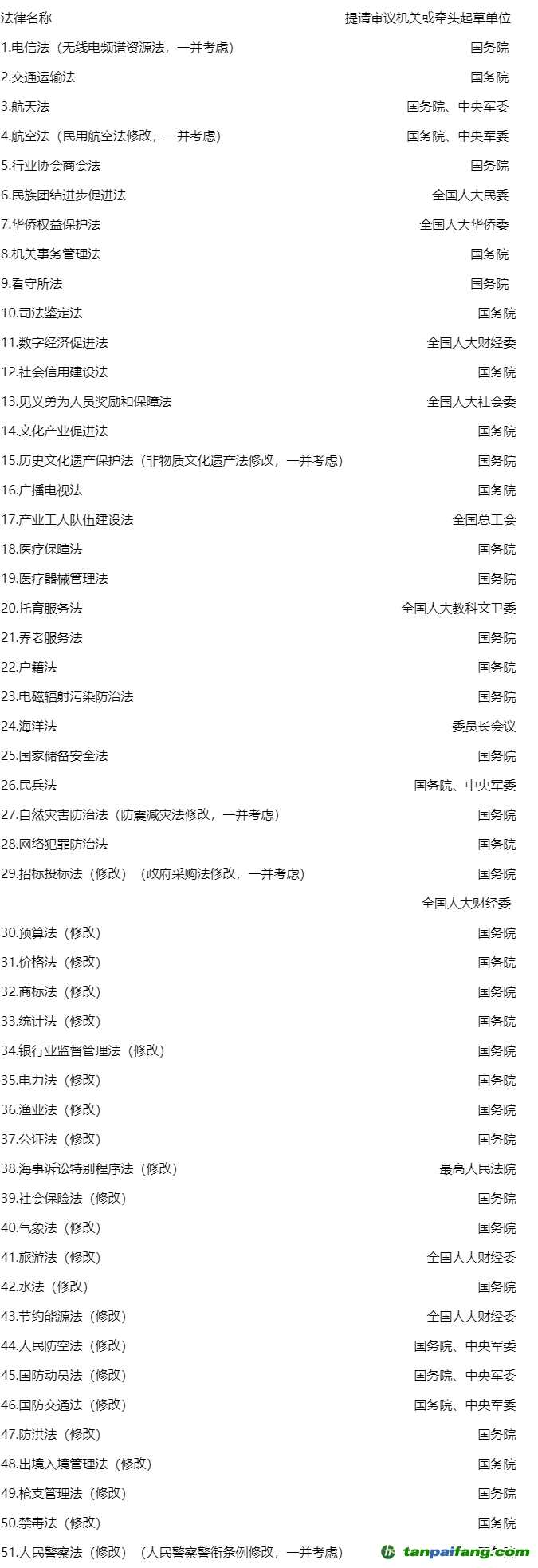 十四屆全國人大常委會立法規(guī)劃 本`文@內(nèi)-容-來-自;中_國_碳排0放_交-易=網(wǎng) t an pa ifa ng . c om