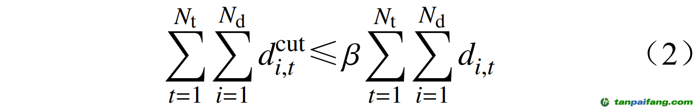 式中:Nt、Nd分別為時段數(shù)和負荷數(shù);di,t、圖片分別為時刻t負荷i及其失負荷的大??; β 為供電充裕度。