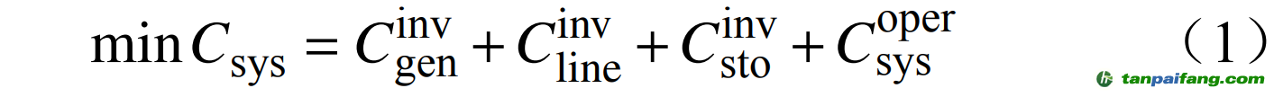 模型主要包含優(yōu)化目標、投資決策約束及生產(chǎn)運行約束3個方面,說明如下。 禸*嫆唻@洎:狆國湠棑倣茭昜蛧 τāńpāīfāńɡ.cōm