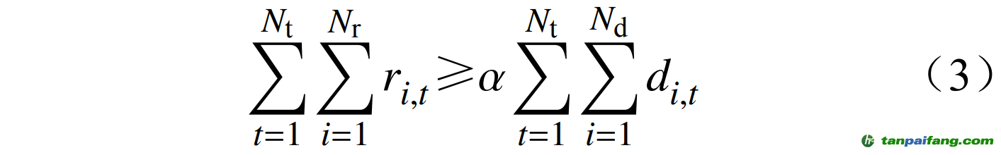 新能源發(fā)電量占比可反映新型電力系統(tǒng)低碳轉(zhuǎn)型的進程,一般要求一定比例的系統(tǒng)用電負荷由新能源發(fā)電來滿足,約束為