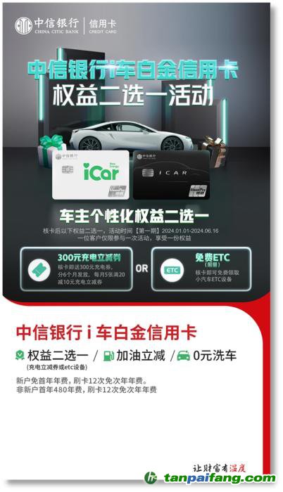 此前,中信銀行信用卡緊密圍繞新能源車主客戶綠色低碳出行的訴求,依托“金融+汽車”生態(tài),推出兩款車主信用卡產(chǎn)品,廣受車主好評和喜愛。其中,業(yè)內(nèi)首張新能源車主卡“中信銀行i車卡”,為車主提供300元充電立減券包,以及加油立減、0元洗車等特色服務(wù),一站式滿足車主客戶的用車和金融服務(wù)需求。此外,今年1月上線的“中信銀行i車Pro卡”聚焦車主全生態(tài)服務(wù),為車主量身定制豐厚的用車、養(yǎng)車權(quán)益,其中,車主新用戶每月可隨心兌換充電5折、停車5折、加油8折、代駕或洗車立減20元等多種權(quán)益。 本`文@內(nèi)-容-來-自;中^國_碳0排0放^交-易=網(wǎng) ta n pa i fa ng . co m