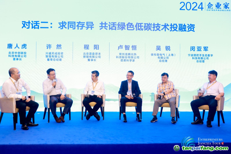 北京晨翕資本管理有限公司董事長程陽、常州龍騰光熱科技股份有限公司首席科學家盧智恒、德布森電氣(上海)有限公司總經(jīng)理吳銳以及寧波搭把手生態(tài)數(shù)字有限公司閔亞軍等共同探討綠色低碳技術(shù)的投融資現(xiàn)狀、挑戰(zhàn)與機遇。