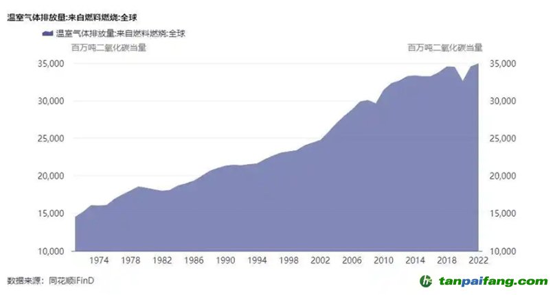 自20世紀(jì)70年代以來全球溫室氣體排放增加1倍以上 數(shù)據(jù)來源:同花順iFinD 本`文@內(nèi)-容-來-自;中_國_碳排0放_交-易=網(wǎng) t an pa ifa ng . c om