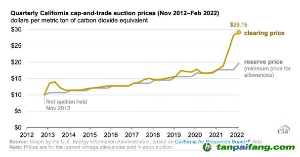 價格高出近10美元。在該市場出售的排放額度可用于加利福尼亞州的總量管制與交易機(jī)制的