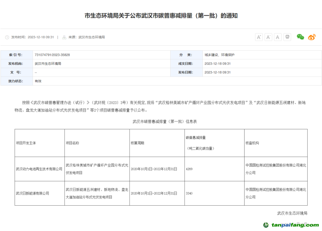 據(jù)了解,首批登記的碳普惠減排量來源,主要是武漢格林美城市礦產(chǎn)循環(huán)產(chǎn)業(yè)園分布式光伏發(fā)電項目以及武漢日新能源五洲建材、新地物流、盤龍大道加油站分布式光伏發(fā)電項目。 內(nèi)/容/來/自:中-國-碳-排-放*交…易-網(wǎng)-tan pai fang . com