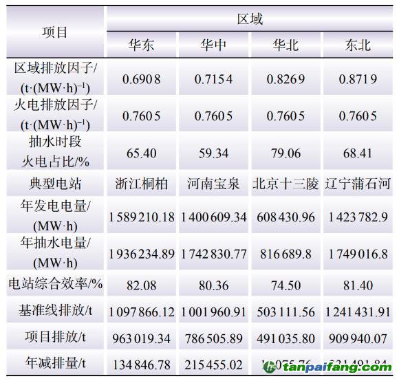 從華東、華中、華北和東北4個區(qū)域各選取1個典型抽蓄電站,應(yīng)用本文所提數(shù)學(xué)模型,計算各電站2022年全年的減排量。
