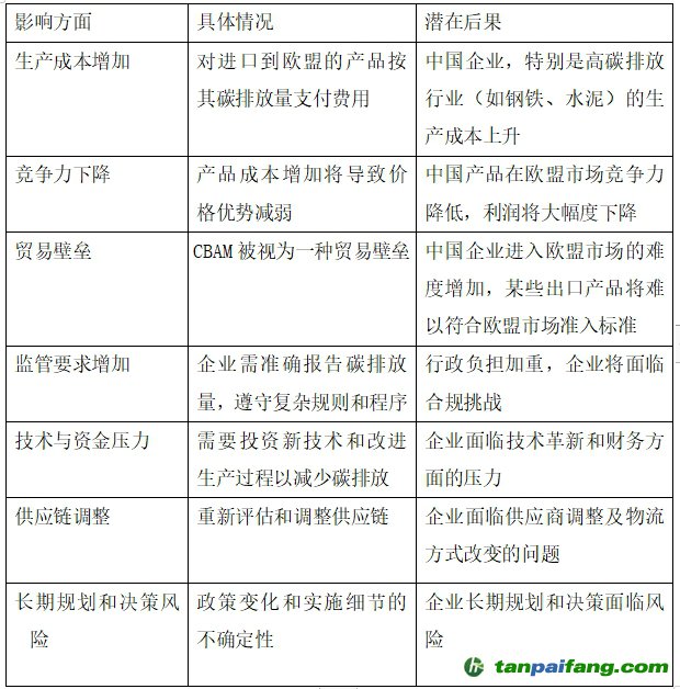 表格一:影響方面 本`文-內(nèi).容.來(lái).自:中`國(guó)^碳`排*放*交^易^網(wǎng) ta np ai fan g.com