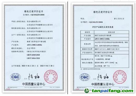 綠色足跡評(píng)價(jià)證書(shū)。
