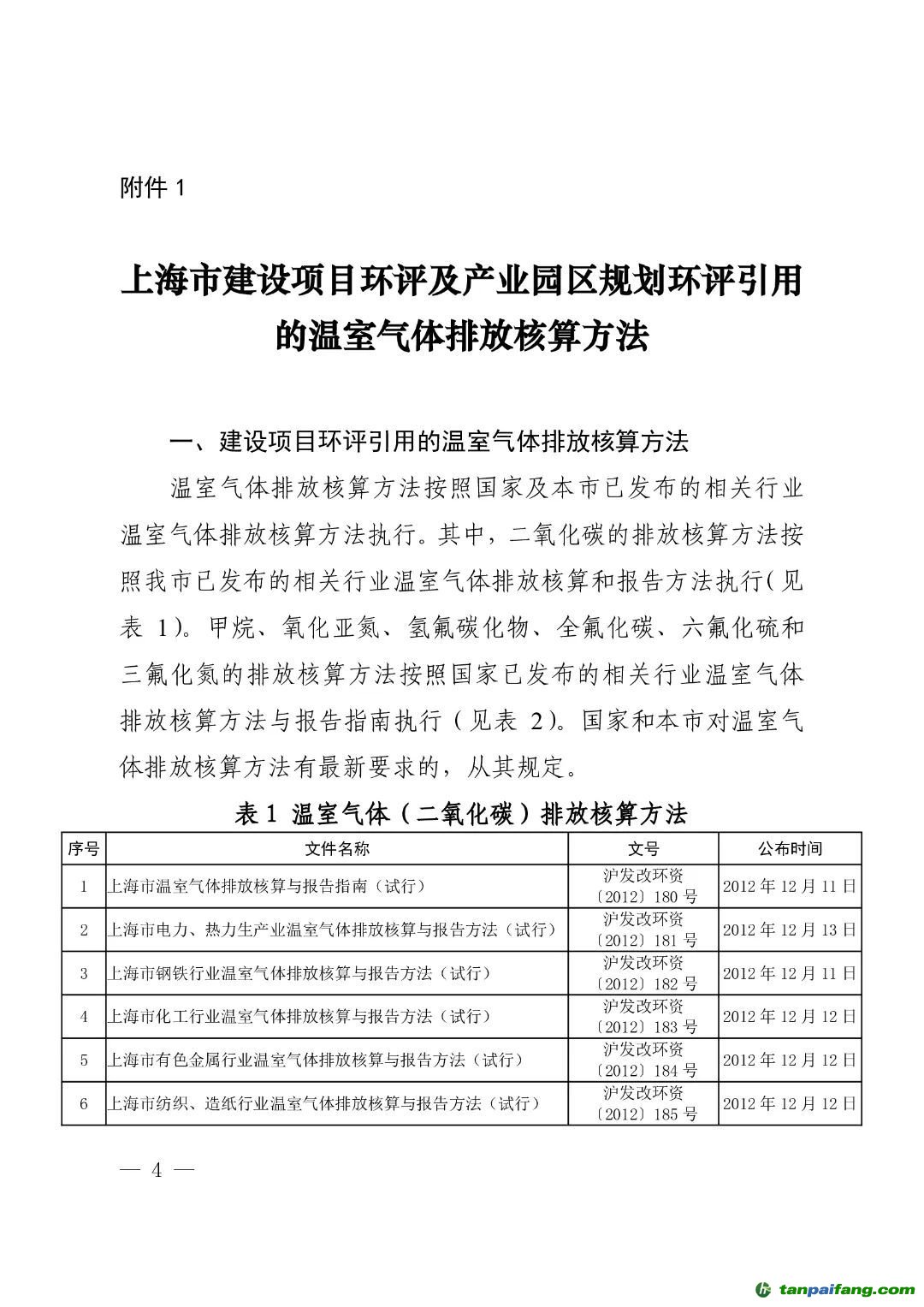 1. 上海市建設(shè)項(xiàng)目環(huán)評(píng)及產(chǎn)業(yè)園區(qū)規(guī)劃環(huán)評(píng)引用的溫室氣體排放核算方法