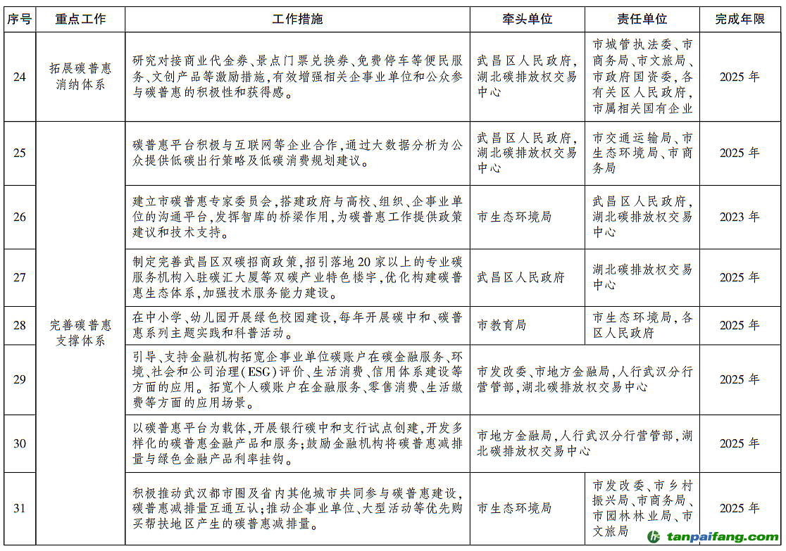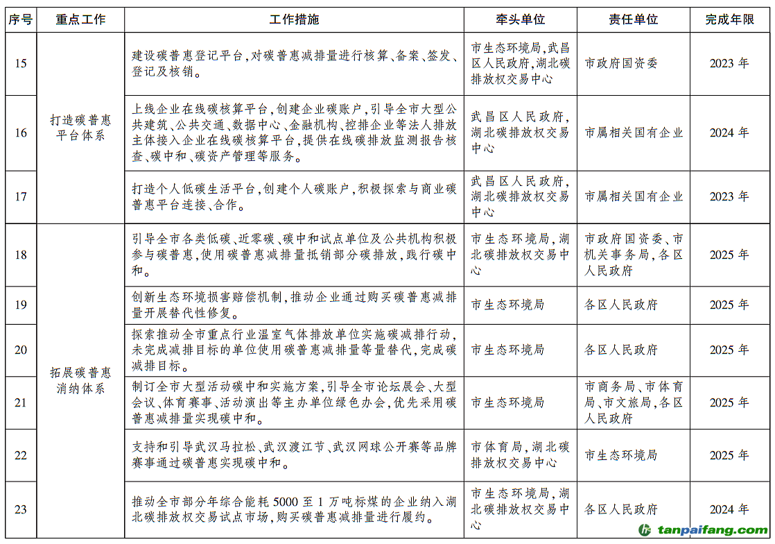 市人民政府辦公廳關(guān)于印發(fā)武漢市碳普惠體系建設(shè)實(shí)施方案(2023—2025年)的通知 本`文@內(nèi)/容/來(lái)/自:中-國(guó)^碳-排-放^*交*易^網(wǎng)-tan pai fang. com