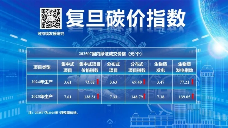 6月29日,復(fù)旦大學(xué)可持續(xù)發(fā)展研究中心(以下簡(jiǎn)稱“研究中心”)公布了2025年7月復(fù)旦碳價(jià)指數(shù)結(jié)果。此次公布了2025年7月全國(guó)碳排放配額(簡(jiǎn)稱CEA)價(jià)格指數(shù)、2025年12月全國(guó)CEA價(jià)格指數(shù)、2025年7月全國(guó)CCER價(jià)格指數(shù)以及2025年7月中國(guó)綠色電力證書GEC價(jià)格指數(shù)。