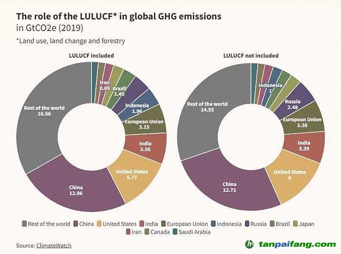指標(biāo)的選擇對(duì)各國的排量排名有著巨大的影響。排放量核算,該不該將“土地利用、土地利用變化和林業(yè)”(LULUCF)包含在內(nèi)呢?該部門既有溫室氣體排放源,又有碳匯。Mathias 指出:“如果核算的目的是觀察排放源隨時(shí)間的變化,那就不應(yīng)該將碳匯包含在內(nèi)。”如果不將LULUCF計(jì)算在內(nèi),中美仍是世界兩大排放國,但原本排名三四的歐盟和印度則變成并列第三。如果將LULUCF計(jì)算在內(nèi),印尼的排放量會(huì)從第八名(1 Gt二氧化碳當(dāng)量)躍升到第五名(1.96 Gt二氧化碳當(dāng)量),因?yàn)樵搰挚撤ミ^度。此外,哪些氣體該算作溫室氣體呢?有些指標(biāo)把所有具有溫室效應(yīng)的氣體都計(jì)算在內(nèi),折算成二氧化碳當(dāng)量;其他指標(biāo)則只算二氧化碳,從而使得主要排放甲烷、一氧化二氮的農(nóng)業(yè)在排放清單中的比重下降。 本`文@內(nèi)-容-來-自;中_國_碳排0放_(tái)交-易=網(wǎng) t an pa ifa ng . c om