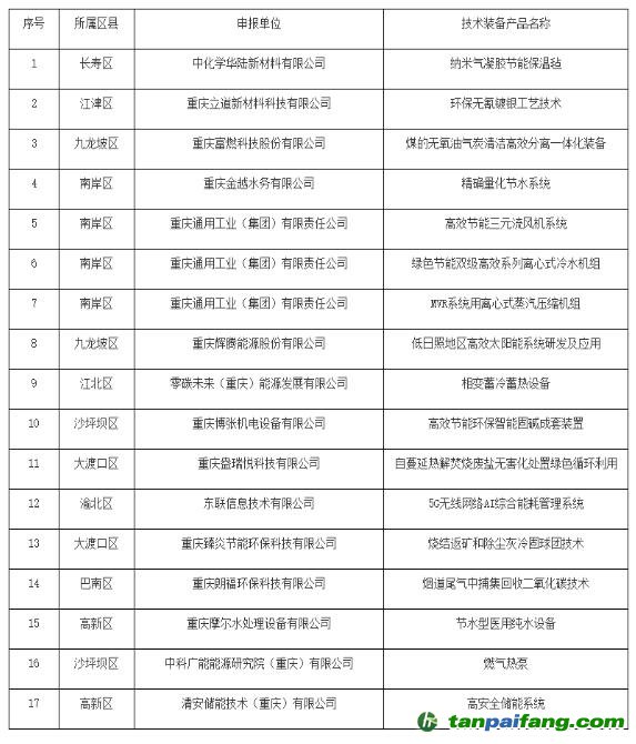 重慶市工業(yè)領(lǐng)域綠色低碳先進(jìn)適用技術(shù)、裝備、產(chǎn)品公示名單